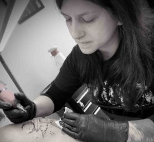 Descobri o meu gosto pela tatuagem em 2016 quando trabalhei num estúdio de tatuagens mas na secção de venda de roupa. Sempre tive curiosidade pela arte da tatuagem e, um dia, num momento de brincadeira, pedi aos artistas que me ajudassem a fazer uma tatuagem em mim própria. Montaram-me o material, deram-me algumas dicas e, a medo, linha a linha, fiz o inesperado. Ficámos impressionados com o resultado e isso despertou um lado artístico em mim que desconhecia. Dediquei-me a desenvolver um estilo próprio, que hoje em dia é caracterizado por uma mistura única de temas sombrios e delicados. Obcecada pelo perfeccionismo, acredito que cada detalhe é essencial para criar uma tatuagem extraordinária. O meu objetivo é traduzir a ideia do cliente para o meu estilo próprio. Garantindo sempre qualidade máxima a longo prazo.